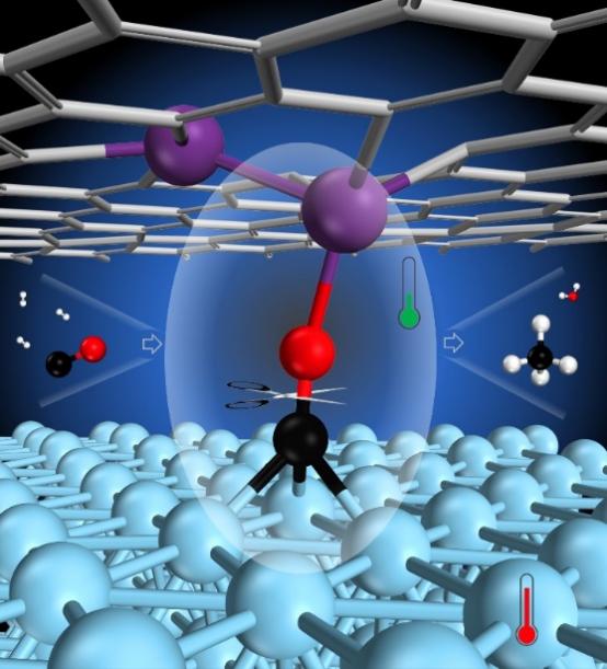 Since it was discovered by Sabatier and Senderens in 1902, the catalytic COx hydrogenation to methane (methanation) has served as an ideal model reaction for the fundamental understanding of catalysis on the gas-solid interface. This reaction plays an essential role in various industrial processes such as CH4 production, COx removal in hydrogen purification for fuel cells and ammonia synthesis processes. The conversion of CO to methane is mainly limited by challenges associated with the breaking of the strong C-O bond and thus the reaction runs at high temperatures to overcome this barrier. Like the Haber-Bosch process, the methanation reaction is an exothermic reaction and hence the increased total pressure is needed to shift to higher equilibrium conversion at elevated temperatures. Altogether, this will increase the energy consumption of the reaction, introduce higher demands on the pressure resistance of the reactor, the temperature resistance of the catalyst, and also require efficient solutions for heat transfer properties of the reactor. Therefore, developing a low-temperature solution for the methanation reaction is one of the key scientific challenges to be resolved and this clearly requires a more energy-efficient catalyst.